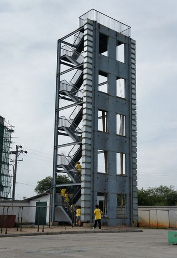 消防训练塔设计依据:参照国家相关标准,设计并制作安装消防训练塔。根据(1983年3月发布 1981年10月1日起实行)消防站建筑设计标准《GMJ1--81》之第六章《建设消防训练塔的要求及制作标准》